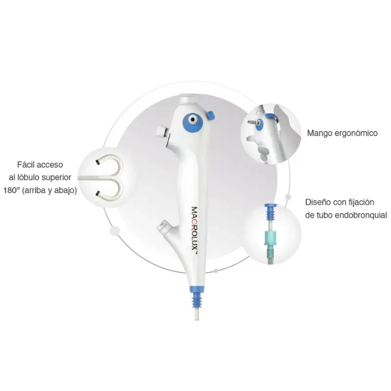 Macrolux es un broncoscopio flexible digital de un solo uso, diseñado para ofrecer la máxima seguridad, precisión y facilidad de manejo en entornos clínicos exigentes. Con alta resolución Full HD (1080p), gran capacidad de succión y compatibilidad con instrumental médico habitual, garantiza diagnósticos más fiables y procedimientos más seguros.