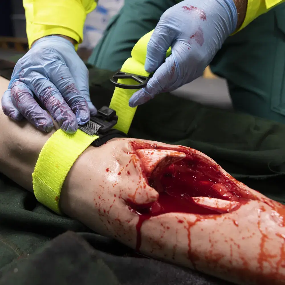 FullStop® Alta Visibilidad es un torniquete de gancho y bucle que aplica una presión gradual con cada giro. Al igual que un vendaje compresivo, el FullStop® funciona aumentando la presión circunferencial con cada vuelta consecutiva del material.
