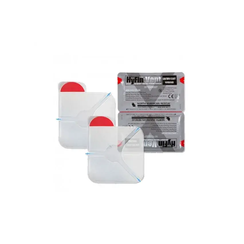 El parche torácico con válvula HyFin TwinPack es un vendaje oclusivo de 15,24 x 15,24 cm con una válvula incorporada, con tres canales, que proporciona una oclusión superior durante los protocolos que requieren el uso de un vendaje seguro en 3 partes o un parche torácico valvular o de ventilación. Cuenta con un gel adhesivo mejorado que crea un sellado superior, incluso en las condiciones más adversas, de bajas temperaturas y persona con mucho bello. El sello tiene un forro transparente para permitir la colocación directa sobre la herida y se ajusta fácilmente al pecho del paciente.