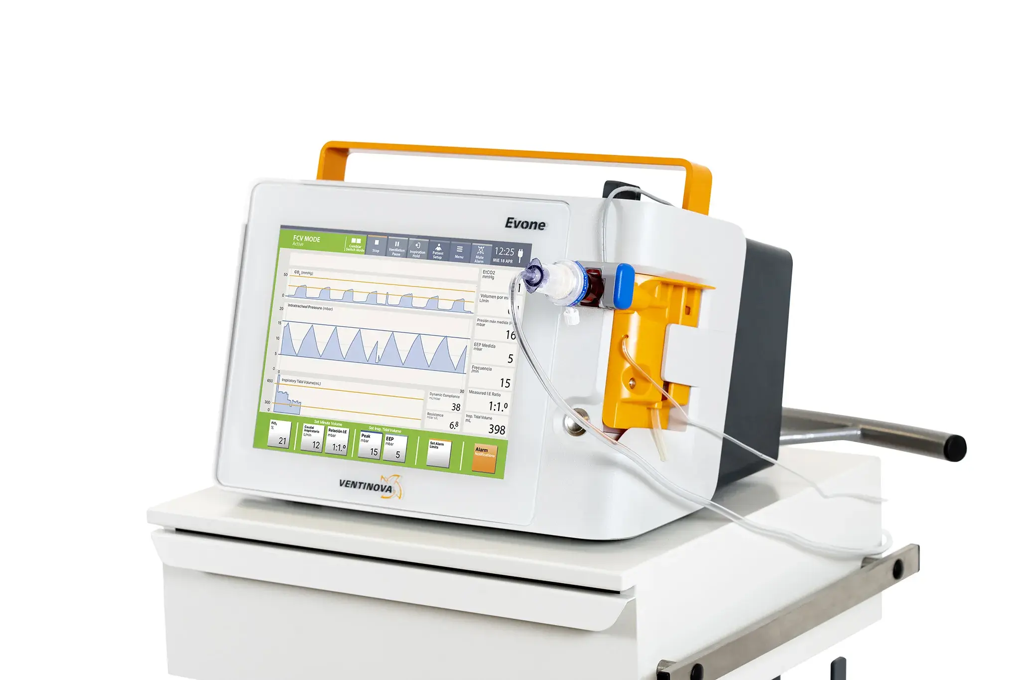 Evone único ventilador mecánico que permite un control completo de todo el ciclo ventilatorio mediante la regulación tanto del flujo inspiratorio como del espiratorio.